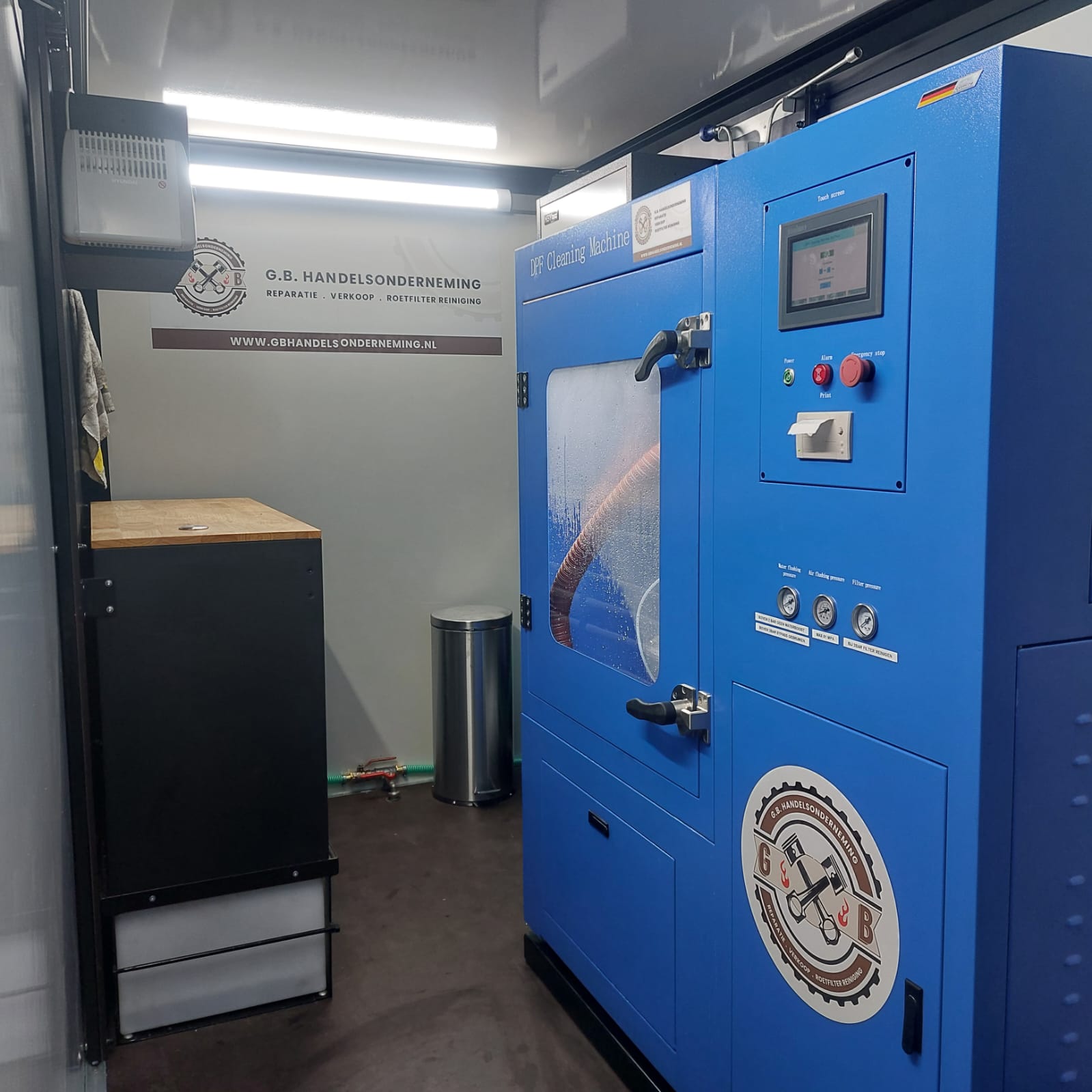 - Grondige reiniging: Met een combinatie van hoge luchtdruk, warm water, chemicaliën en een waterboost wordt het roetfilter volledig gereinigd.